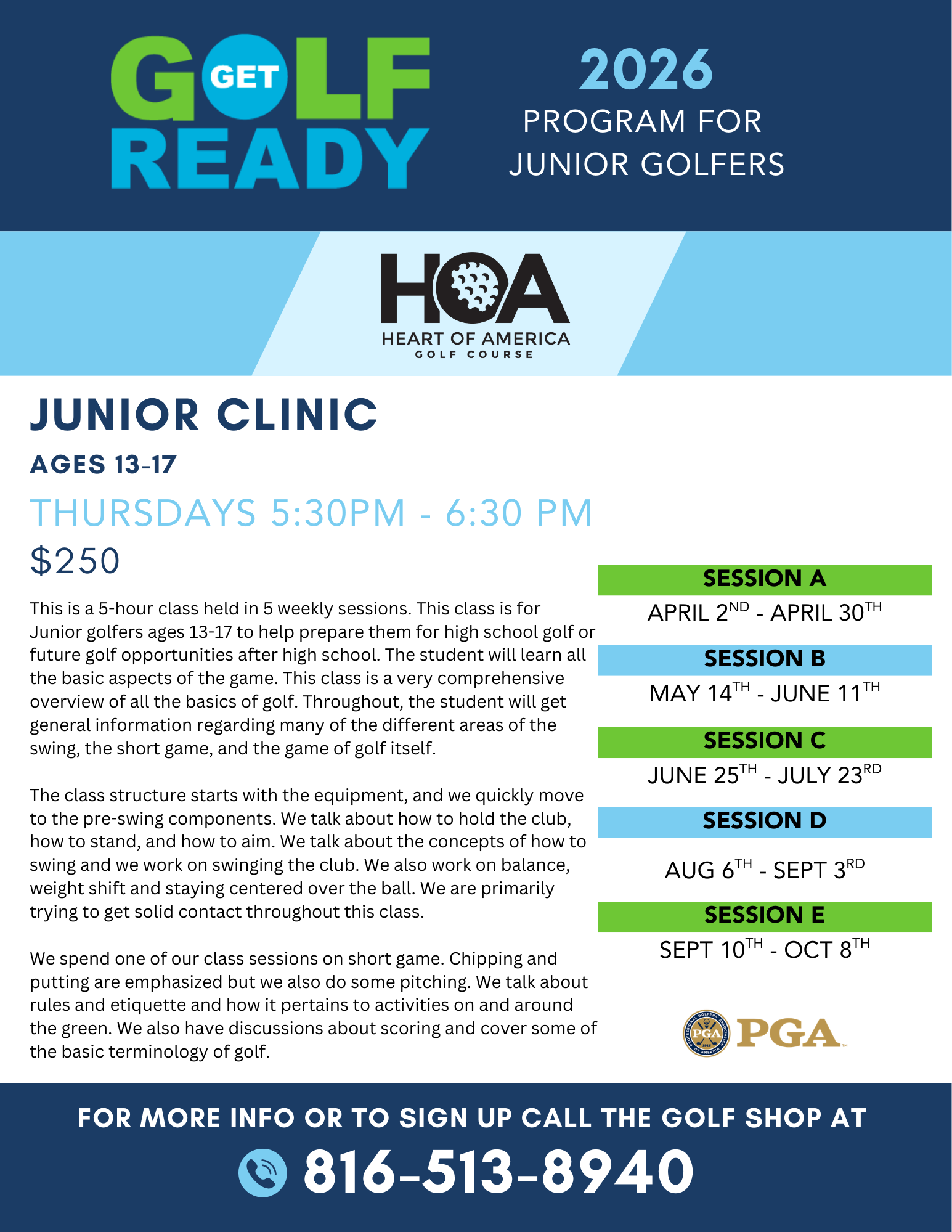 The weekly lesson structure will include physical training, understanding of rules, golf etiquette, procedures for proper play, and strategies for competitive play.